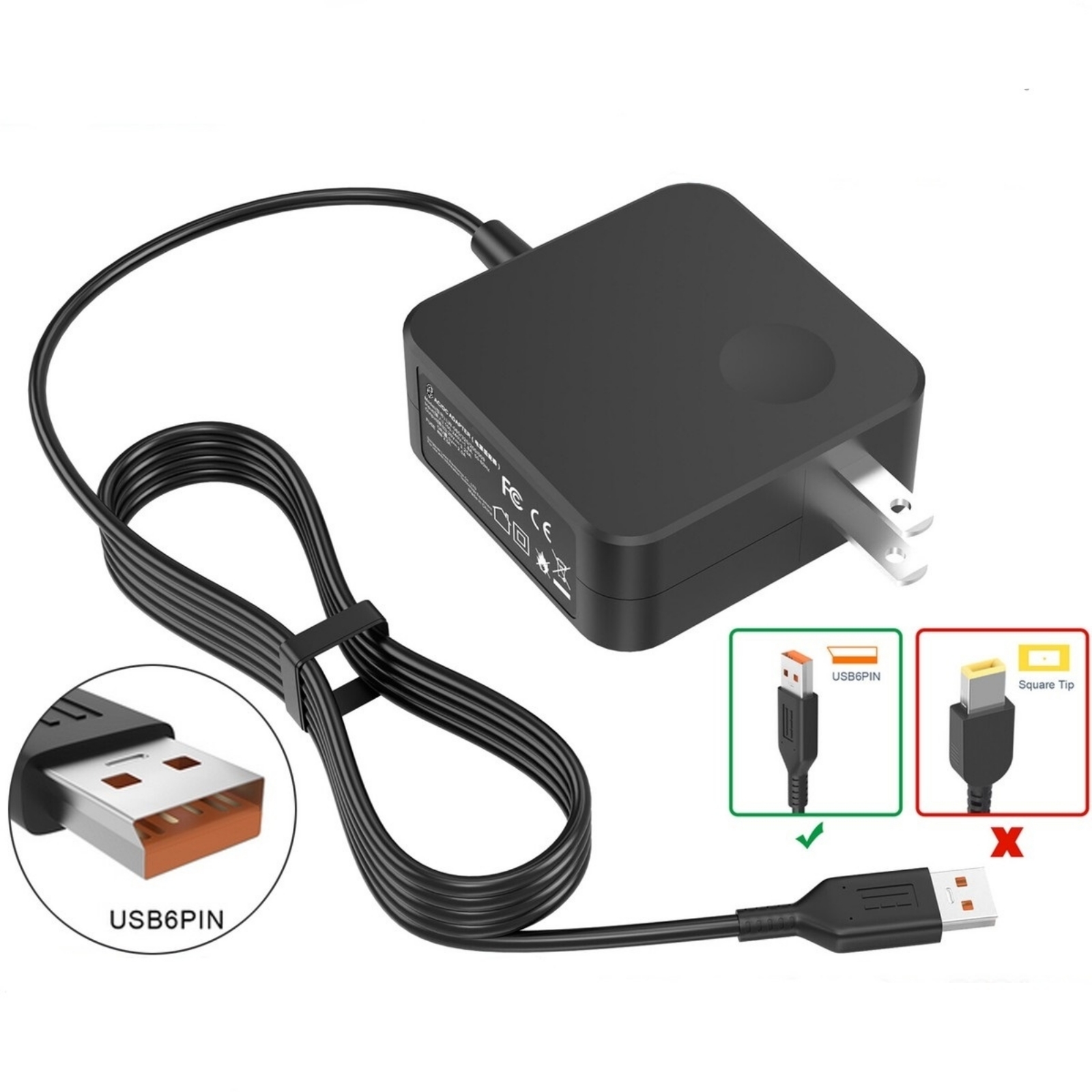 Lenovo AC Adapter  Laptop Charger TYPE C 65W (square)